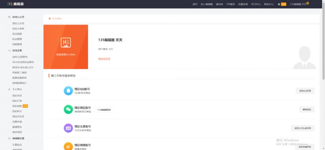 新版?zhèn)€人中心UI更簡潔,更美觀,最主要的是整體界面是向微信后臺看齊的,你會發(fā)現(xiàn)對比之前的版面,這一版更像微信公眾號的后臺,界面更精致,字號設(shè)計更科學(xué),整體上看起來更符合廣大新媒體人的審美需求。
