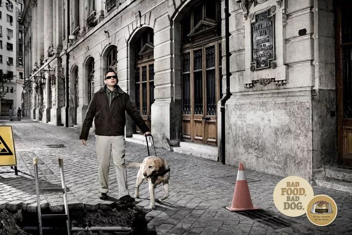 (狗糧廣告:狗糧不好,就別怪狗狗不客氣了)